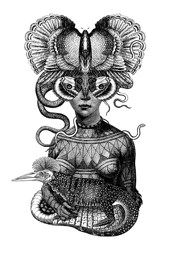 MIRABILIA est une série de douze collages numériques réalisés à partir de gravures anciennes. Cette série – imprimée en sérigraphie – est tirée d’un ensemble d’images intitulé « Mutations Fabuleuses », représentant les découvertes d’un aventurier imaginaire du dix-neuvième siècle. L’ensemble de ce travail fait l’objet d’un projet d’édition qui sera publié sous la forme d’un bestiaire fantastique.